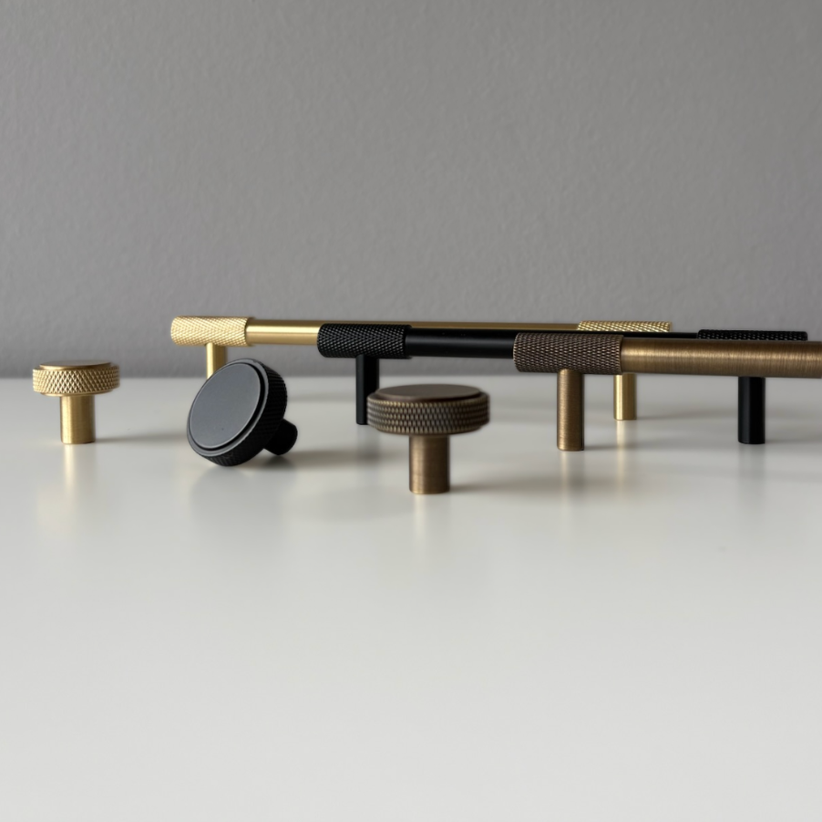 Die Serie Onyx kombiniert industrielles Design mit zeitloser Eleganz. Die markante Rändelung sorgt für eine besondere Haptik und ein modernes Erscheinungsbild. Onyx umfasst Knöpfe in drei Grössen, einen kompakten T-Griff sowie Griffleisten in fünf verschiedenen Längen. Dank der hochwertigen Oberflächen passt Onyx perfekt zu modernen und klassischen Möbeln. Erhältlich in den Oberflächen Gebürstetes Messing, Antik Messing und Mattschwarz.